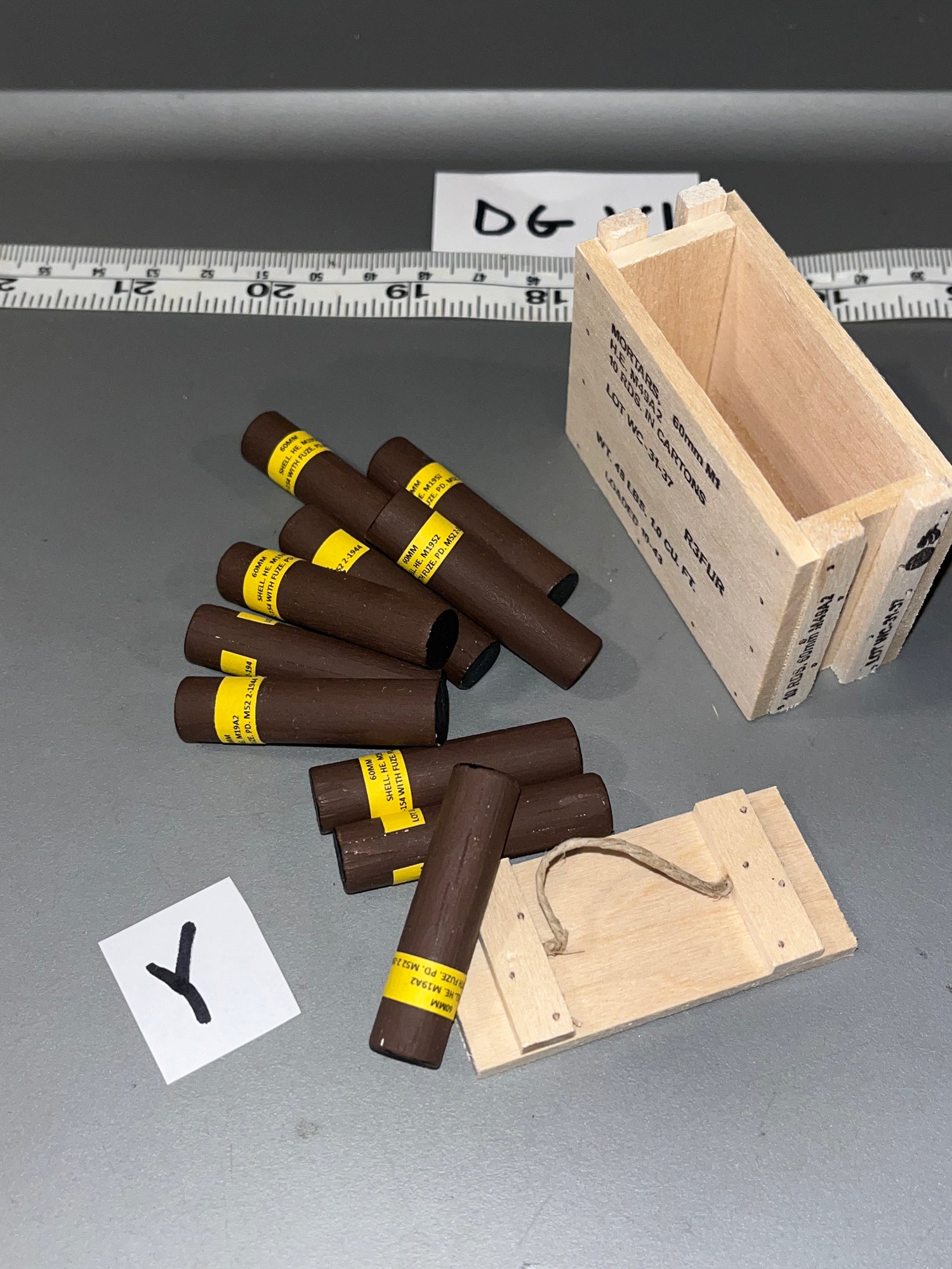 1/6 Scale WWII US 60mm Mortar Ammunition Crate with Ammunition Tubes from Dale Guyer. Tubes are made of solid wood.