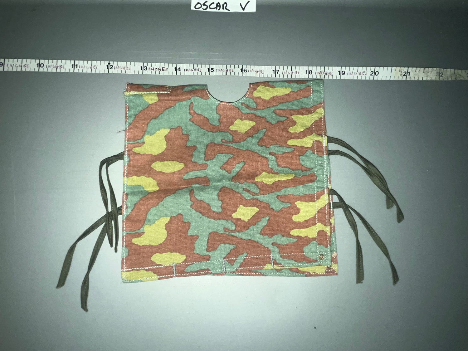 When Her Majesty's troops landed in Italy, they lacked camouflage uniforms for hot, dry weather. Curiously, something that had never posed a problem in North Africa or Sicily became one in Italy! So (just like their Axis opponents!), they seized stocks of camouflage Italian model 29 fabric, including tent canvas. Deemed too wide, they cut it down the middle, adding a hole for the head and two straps on each side, and voilà—a chasuble! These chasubles were worn by British and Polish soldiers in Italy, as evidenced by numerous period photographs. Our model is constructed exactly like the real thing!